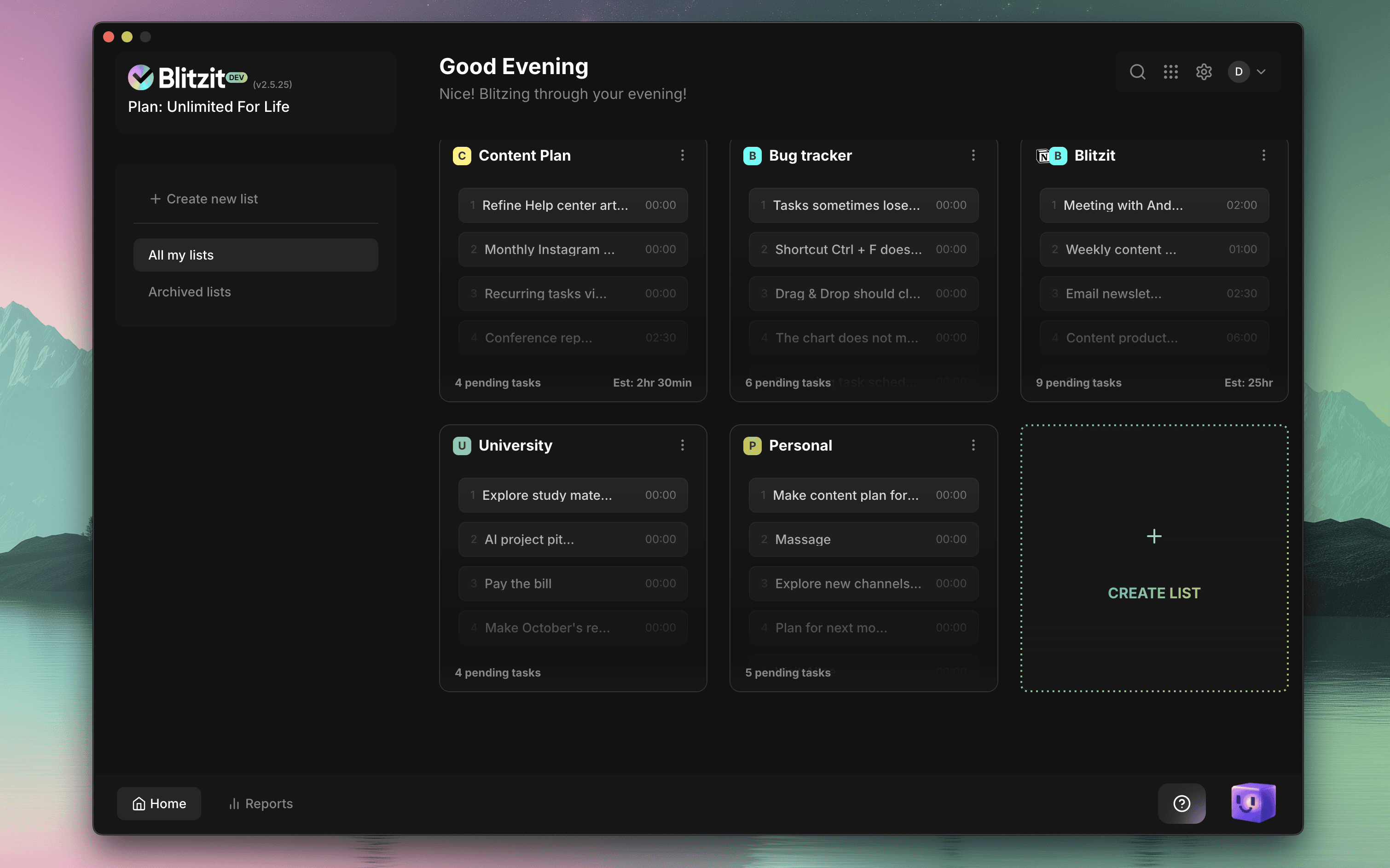 Lists let you group and separate tasks across your different projects or areas of work. They help you keep things organized and make it easy to find tasks based on context.